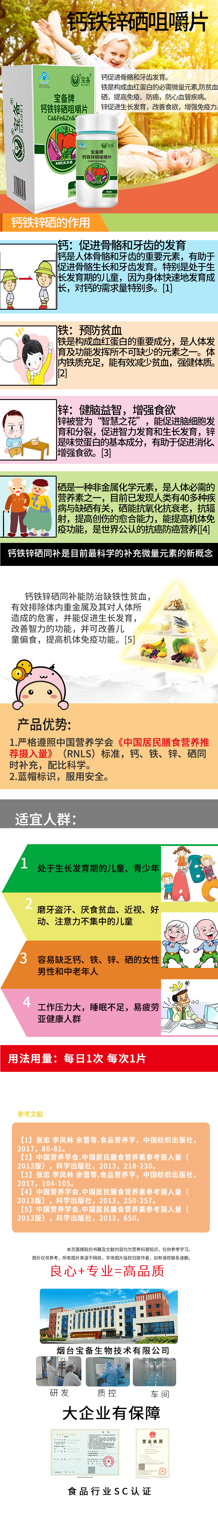 產(chǎn)品名稱】:寶備牌鈣鐵鋅硒咀嚼片